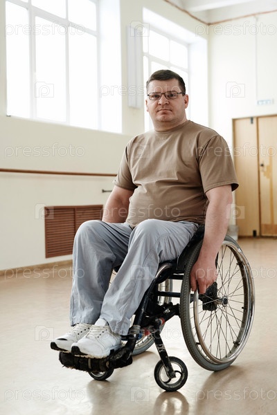 Зрелый мужчина в инвалидной коляске в танцевальной студии
