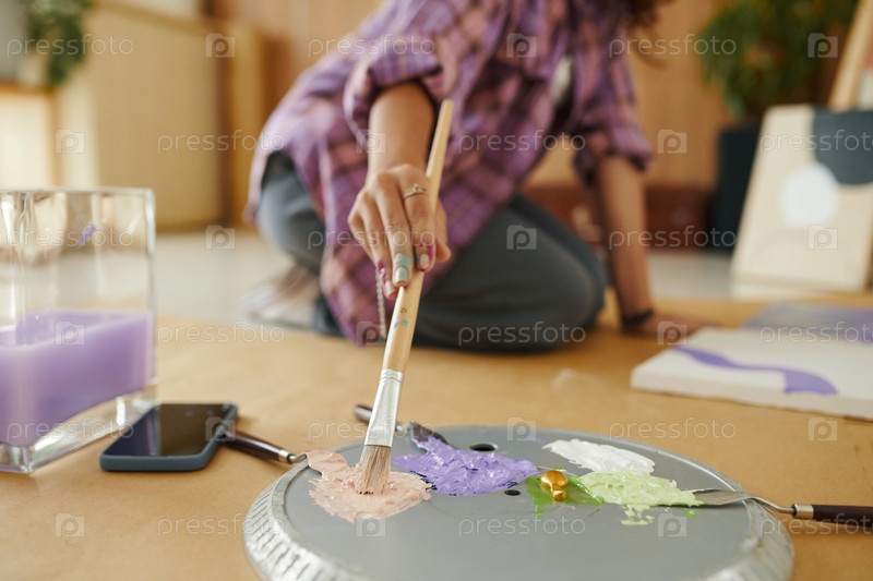 Девушка, которая подбирает краску на кисти