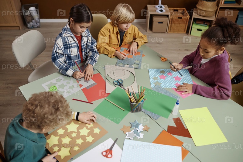 Разнообразная группа маленьких детей наслаждается классом искусства и ремесел