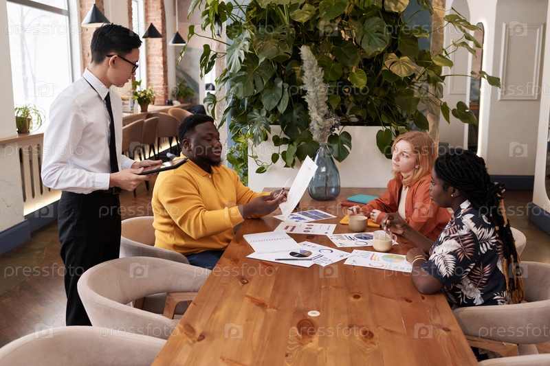 Деловые люди заказывают обед в бизнес-ресторане