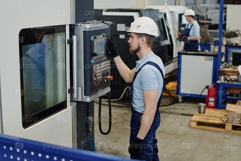 Молодой профессиональный тернер, использующий станки с ЧПУ
