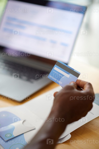 Человек платит картой за счета по коммунальным услугам