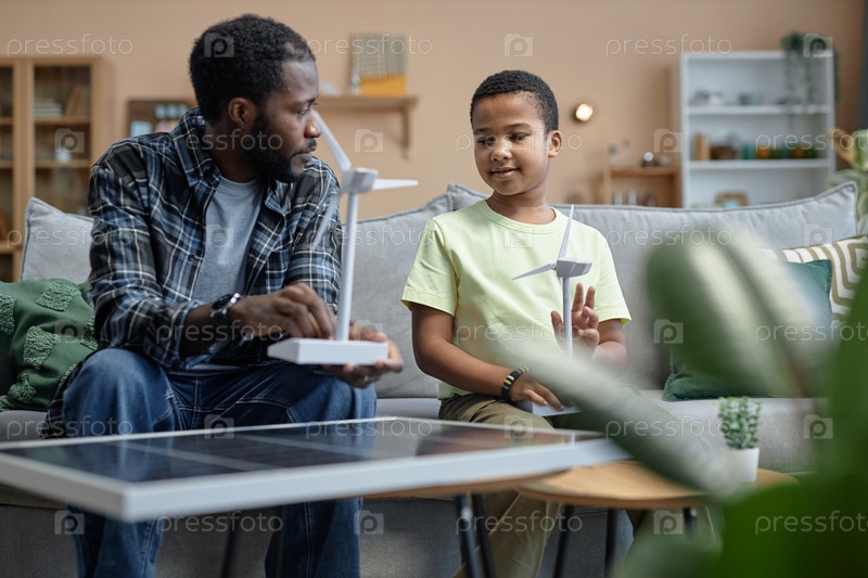 Отец учит сына возобновляемым источникам энергии