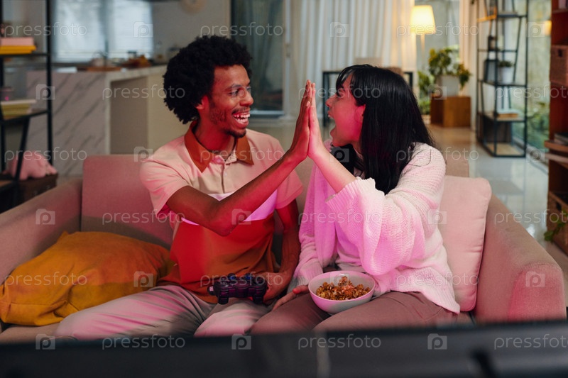 Геймеры празднуют победу в видеоигре