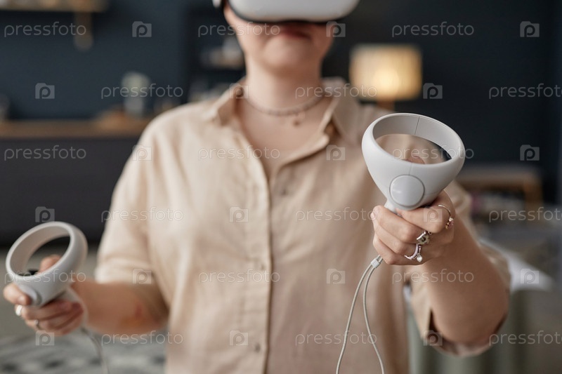 Непризнанная девушка играет в VR-игру