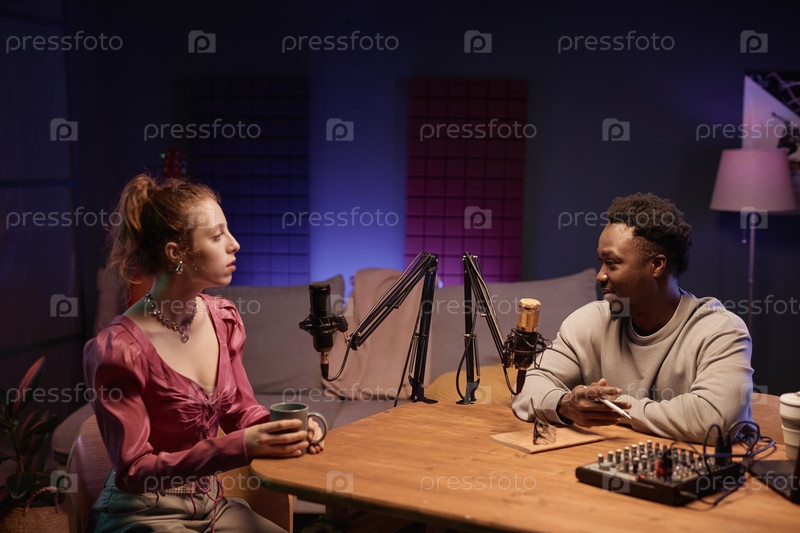 Два различных подкастера во время интервью в студии