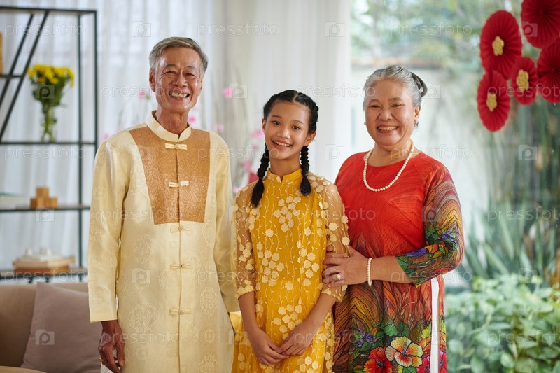 Счастливые бабушка с дедушкой и внучка-подросток