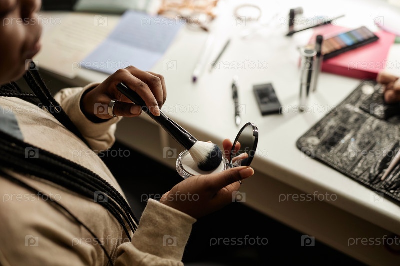 Женщина, использующая макияжный порошок