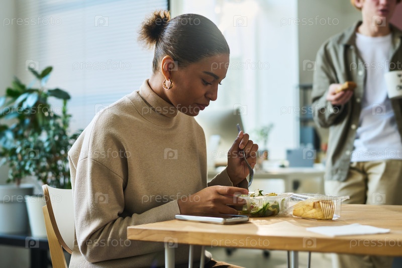Женщина, получающая овощный салат на обед