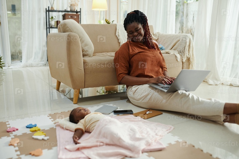 Рабочая мать смотрит на спящего ребенка