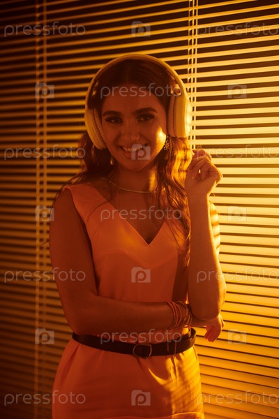 Улыбающаяся индийская девушка в наушниках