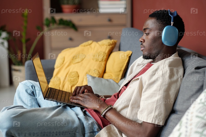 Молодой мужской блоггер в наушниках