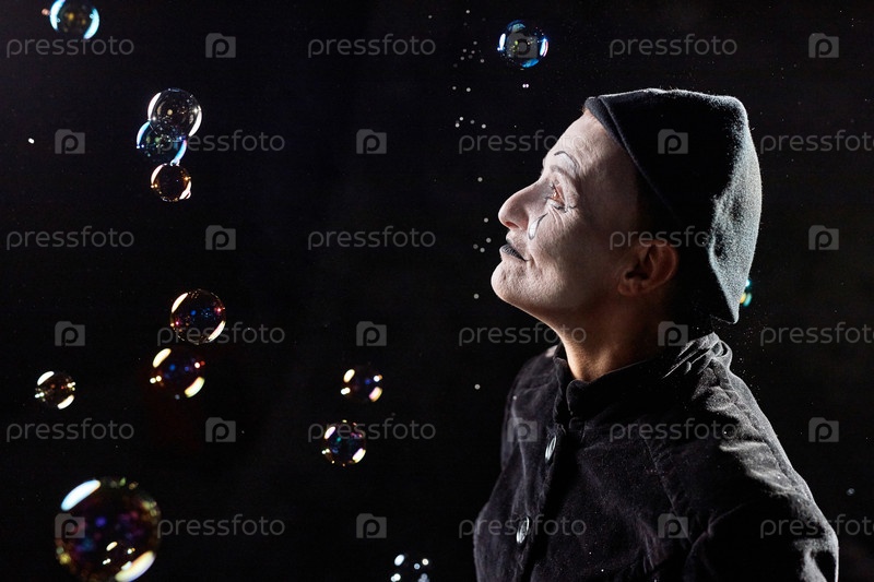 Мим смотрит на мыльные пузыри
