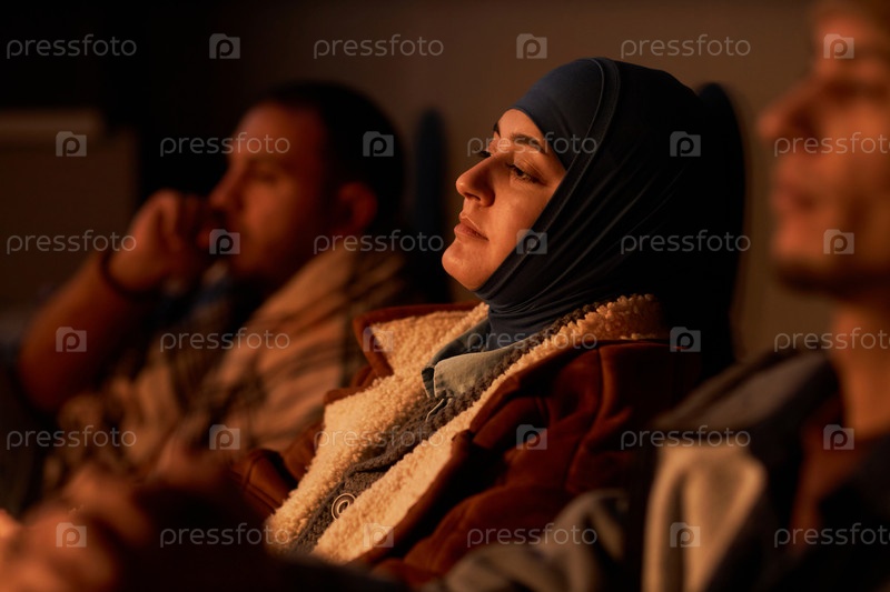 Ближневосточная женщина прячется в бомбоубежище