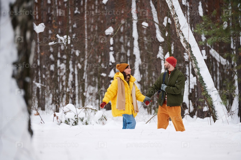 Пара, идущая в зимний день