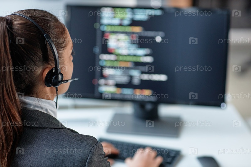 Молодая женщина, носящая гарнитуру в ИТ-поддержке