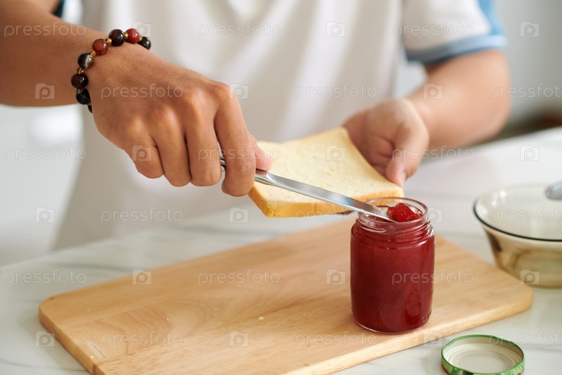 Распространение варенья на хлебном человеке