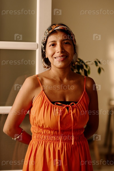 Улыбающаяся женщина в умной повседневной одежде