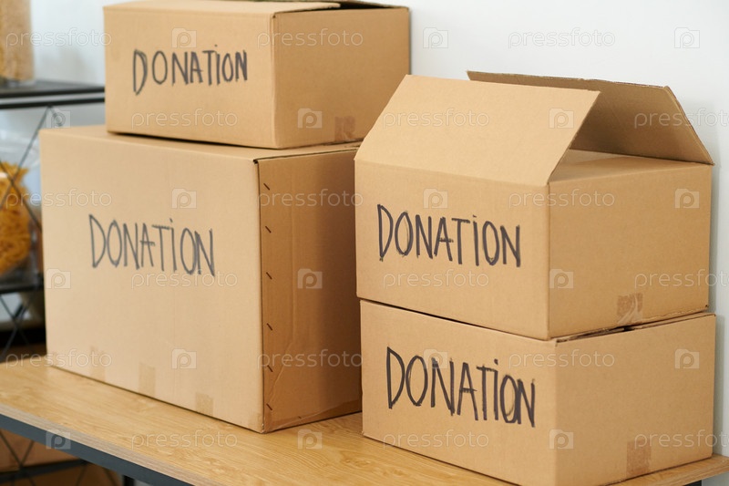 Картонные коробки с пожертвованными товарами