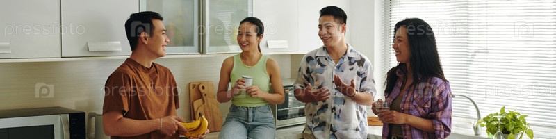 Молодые люди собираются на кухне