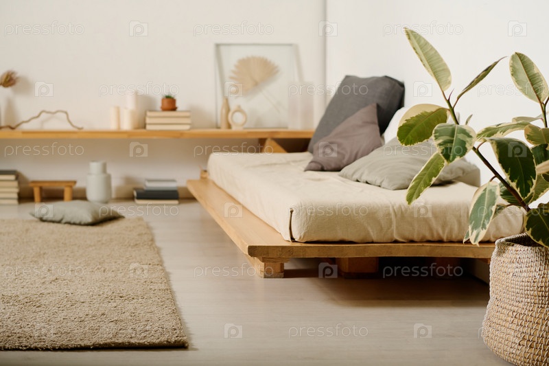Часть спальни с кроватью и ковром