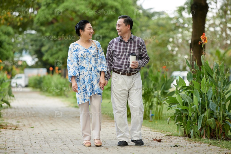 Влюбленная пара гуляет в парке