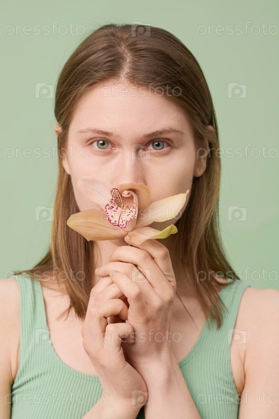 Молодая женщина, нюхающая цветок