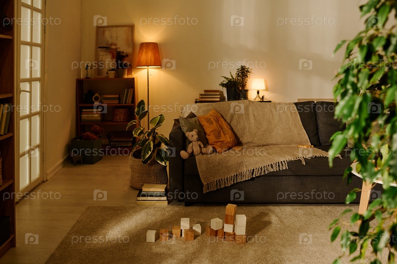 Уютная гостиная с диваном и игрушками
