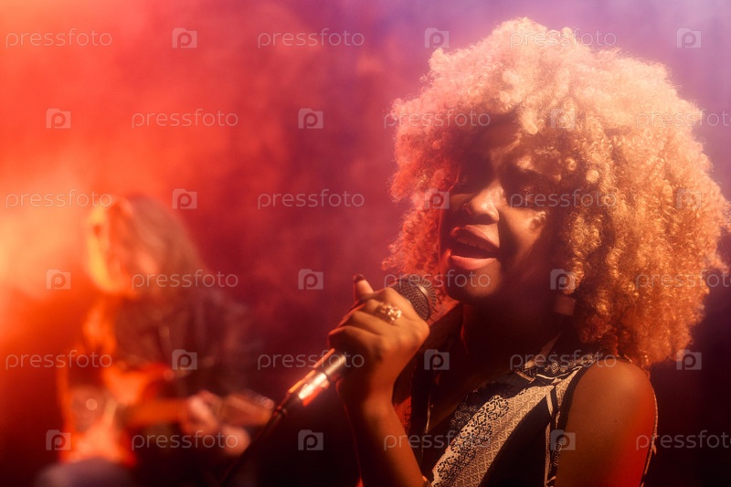 Чёрная женщина, поющая на сцене