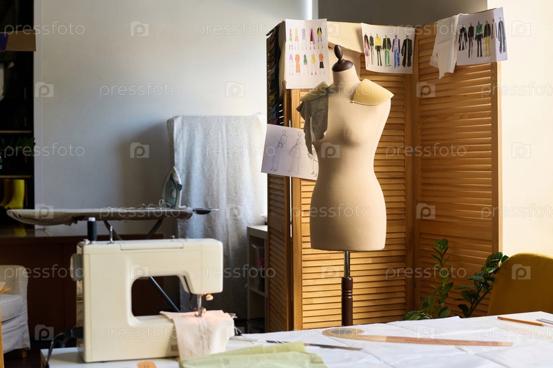 Манекен и швейная машина в ателье