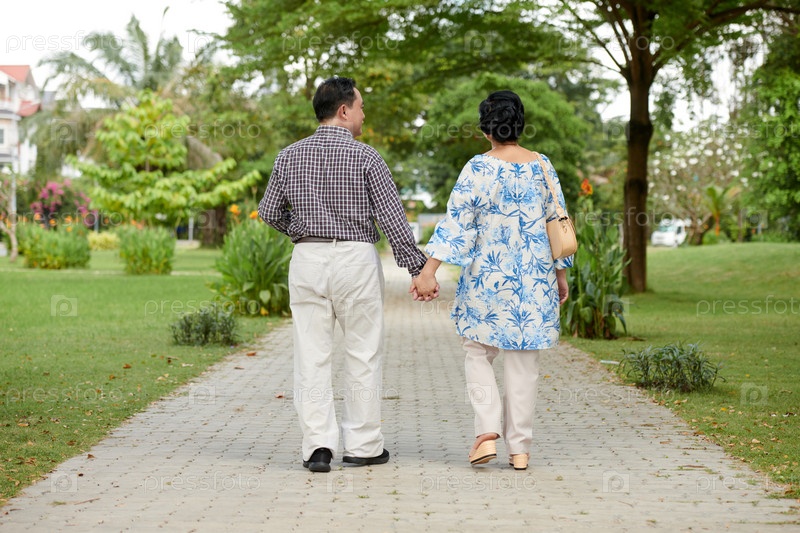 Влюбленная пара ходит по парку