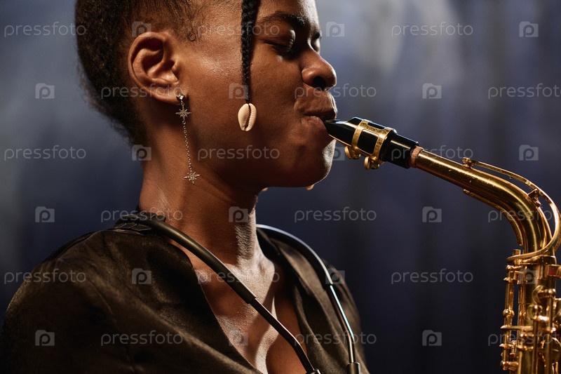 Музыкантка, играющая на саксофоне