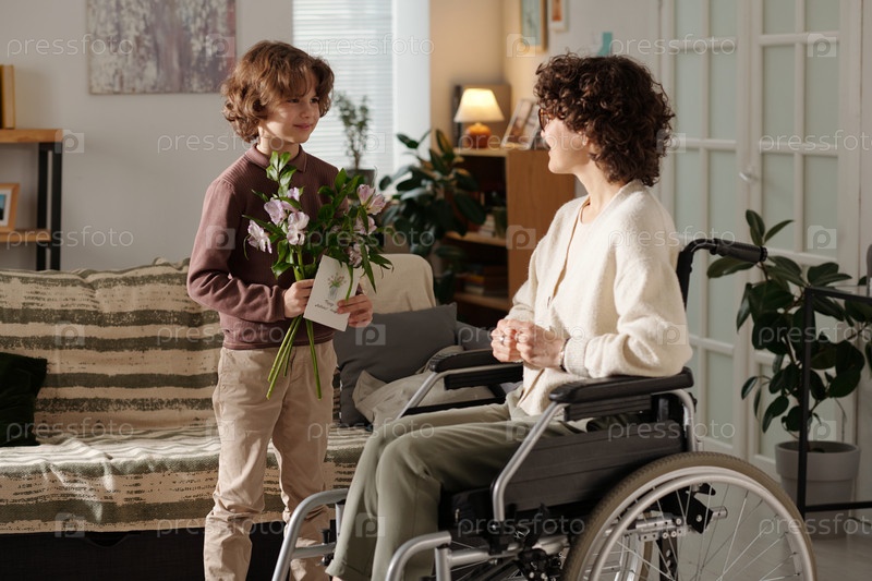 Мальчик и его мать в инвалидном кресле