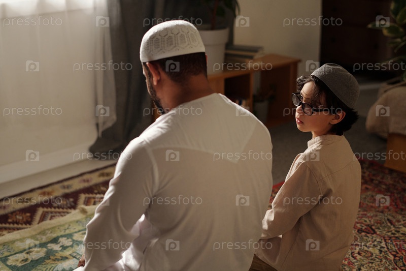 Отец и сын молятся Салах