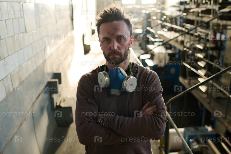 Бородатый человек на заброшенной фабрике