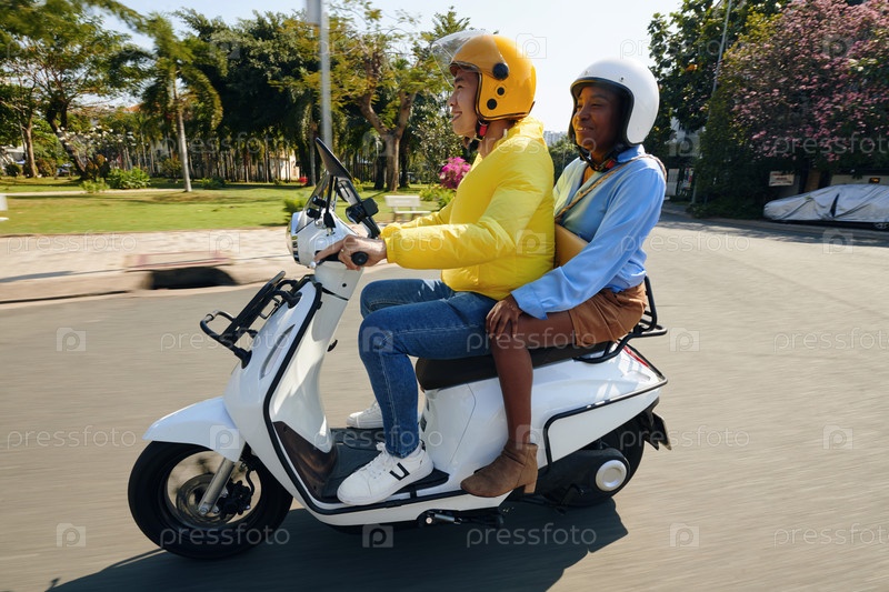 Водитель мотоциклетного такси и пассажир