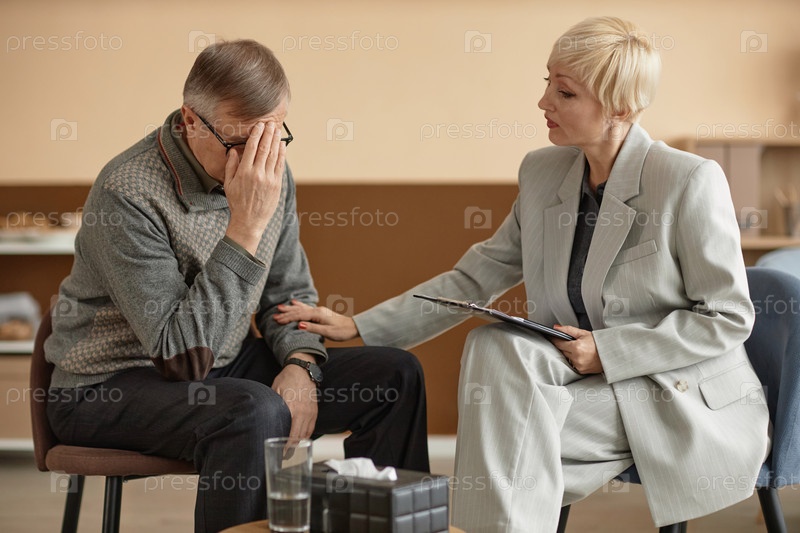 Зрелый мужчина плачет во время сеанса терапии
