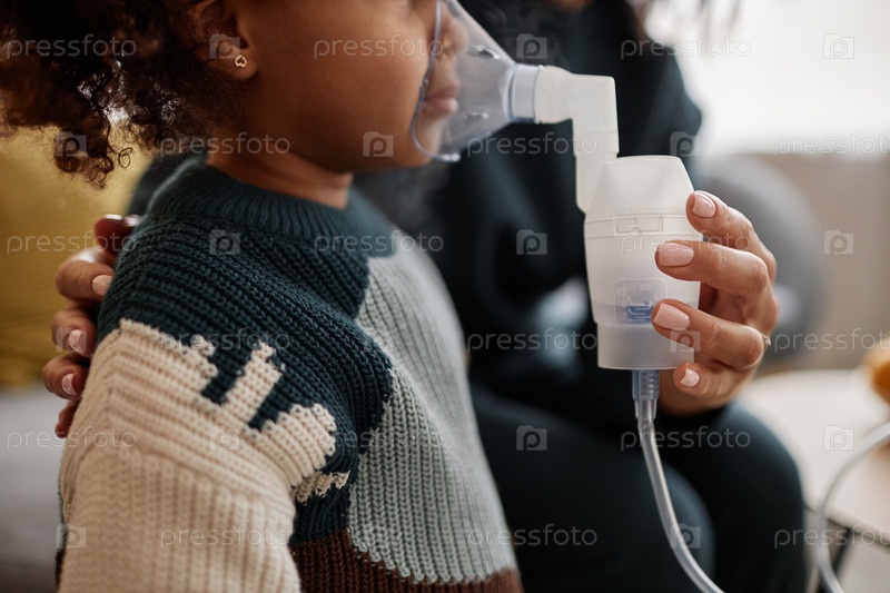 Маленький ребенок выполняет процедуру ингаляции с небулайзером