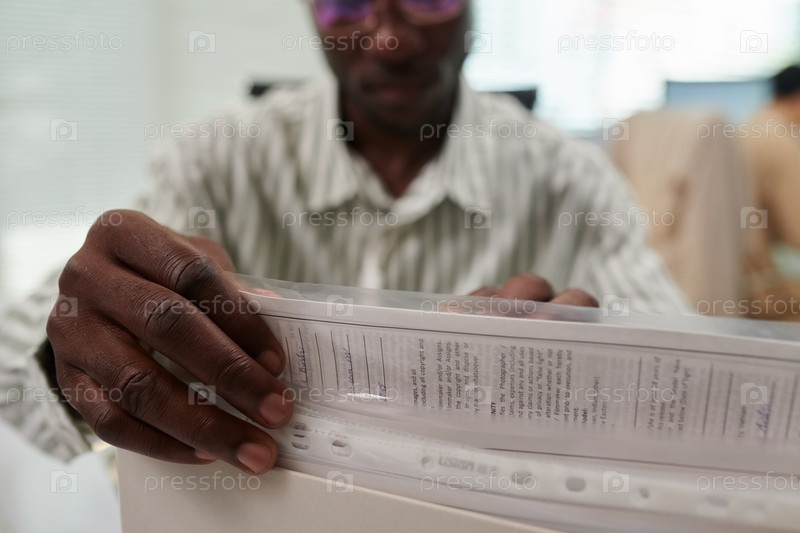 Менеджер вытаскивает документ из офиса