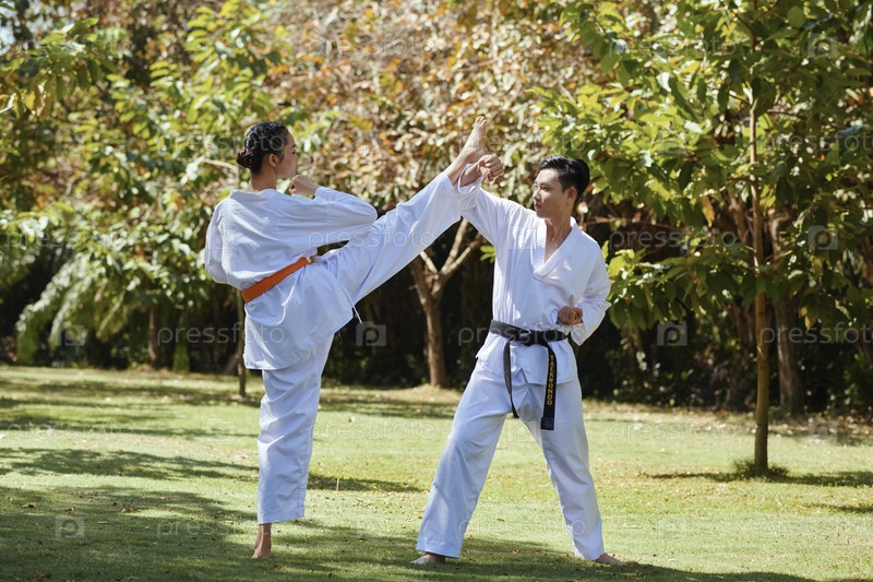Спортсмены Тхэквондо сражаются на свежем воздухе