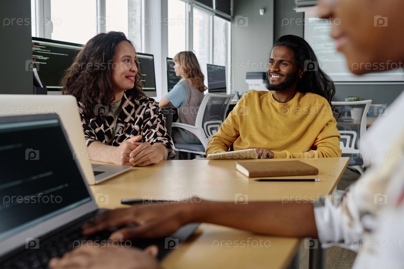 Позитивные бирациальные коллеги, работающие вместе за столом в офисе