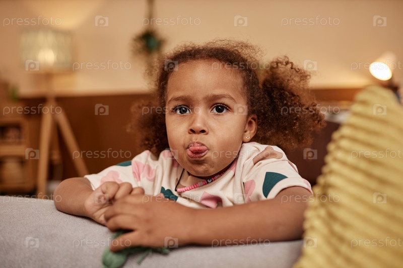 Милая маленькая девочка с гримасом