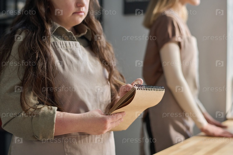 Девушка, записывающая заказы в блокноте