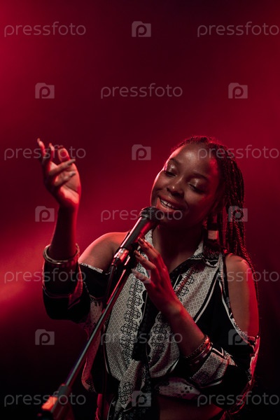 Чёрная женщина, поющая на сцене