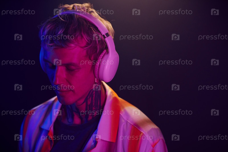 Мужчина слушает спокойную музыку в наушниках