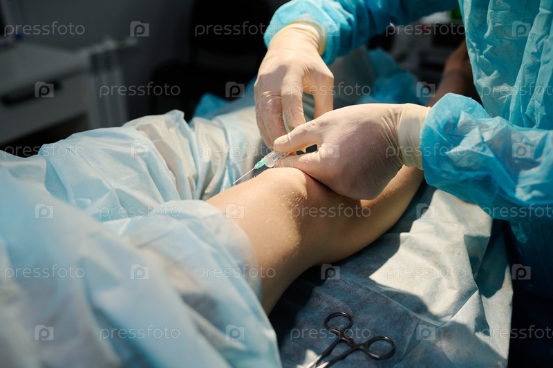 Хирург делает инъекцию анестезии