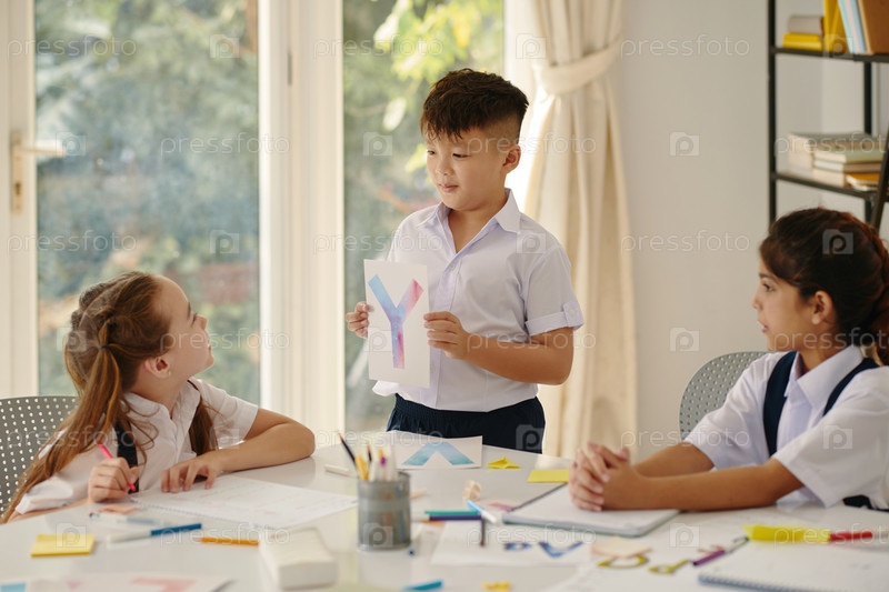 Школьник показывает письмо своим одноклассникам