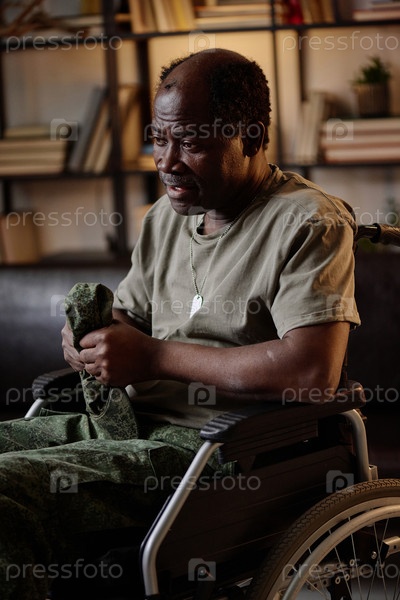 Афроамериканский солдат говорит эмоционально на частной сессии терапии