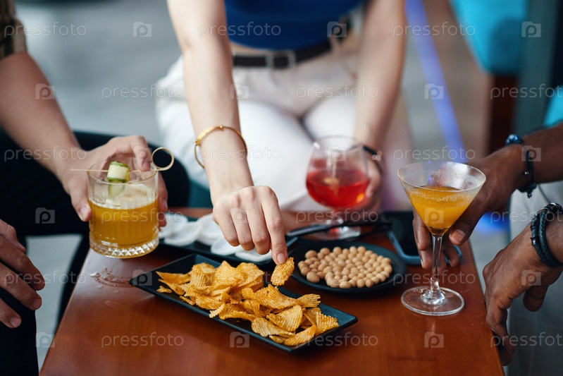 Люди, имеющие напитки и закуски