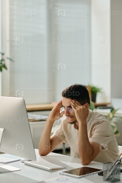 Беспокойный офисный работник прикасается к голове